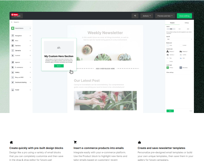The template library includes over 100 professionally designed options that don’t look outdated. Each template adapts automatically to different screen sizes, which means your emails look good whether someone opens them on their phone during lunch or on their desktop at work. The customization options give you enough control to match your brand colors and fonts without overwhelming you with unnecessary choices.